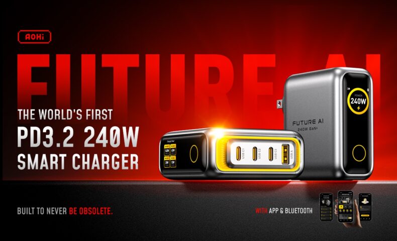 USB-C PD3.2をサポートし、1ポートあたり最大240W出力が可能なUSB充電器「AOHi 240W Smart Charger」