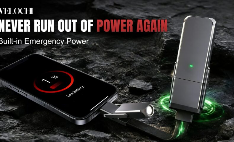 火がつけられるってアウトドアなんかで便利なLEDライト内蔵の1200mAhモバイルバッテリー「VELOCHI Pro」