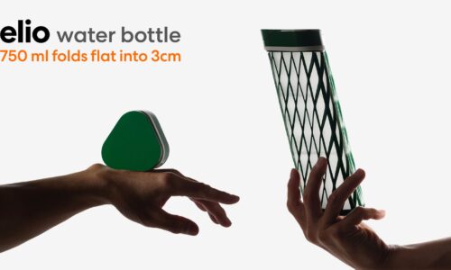 折り畳むと高さ3cmまで縮めるられるシリコン製の折り畳みできる750mLウォーターボトル「elio」…