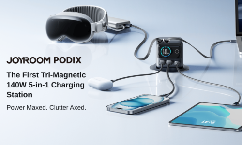 2本の巻き取り式ケーブルUSB-Cケーブルを内蔵した合計140W出力USB-C充電器「PODIX」