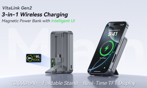 バッテリー容量10,000mAh、3台のデバイスに同時に充電可能なMagSafe対応モバイルバッテリ…