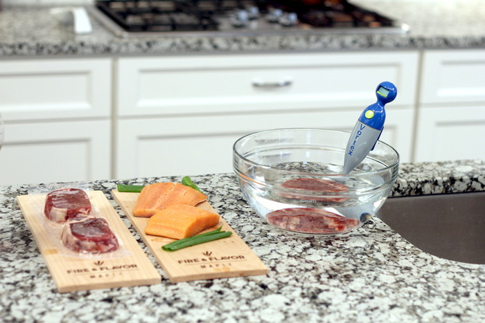 使い方は簡単です。食材や量によって決められた分の水をボールに入れて食材を入れ、タイマーをセットして「Vortex」を容器に差し込むだけ。後はこの「Vortex」が水を攪拌しつつ流水解凍してくれます。そしてアラームが鳴れば解凍終了!!