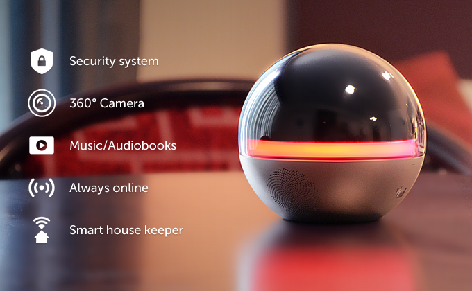 このボール上の筐体、上半分はマジックミラーになっており、この中を左右360度、上下90度の範囲で内蔵カメラが移動して撮影してくれます。もちろん操作はスマホで可能!!WiFi内蔵なので、自宅やオフィスに置いたこの「Branto」が捉えた映像の確認が可能です。