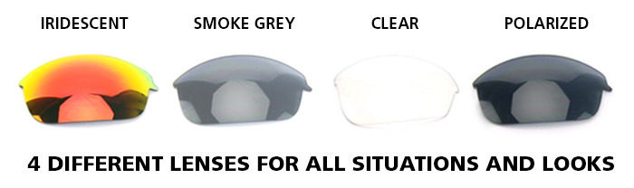 またこのサングラスの特徴としてまず交換用のレンズが付属しており、シチュエーションにあわせて交換が可能になっており、ゴールドレンズにスモールレンズ、クリアレンズ、更に前回の募集より1枚「POLARIZED」レンズが増えて4枚となっています。