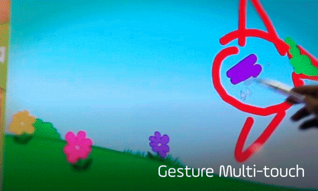 この「WAVE」には2つの赤外線センサーが内蔵されており、センサーの範囲内の指の動きを的確にトラッキング。2本の指まで同時検出できますので、ピンチイン・アウトもできますし、タップもフリックもTVがタッチパネルではないのにちゃんと「WAVE」が指の動きをトラッキングしてシームレスに検出してくれます。もし検出が悪い場合は付属のスタイラスペンを使えば大丈夫。