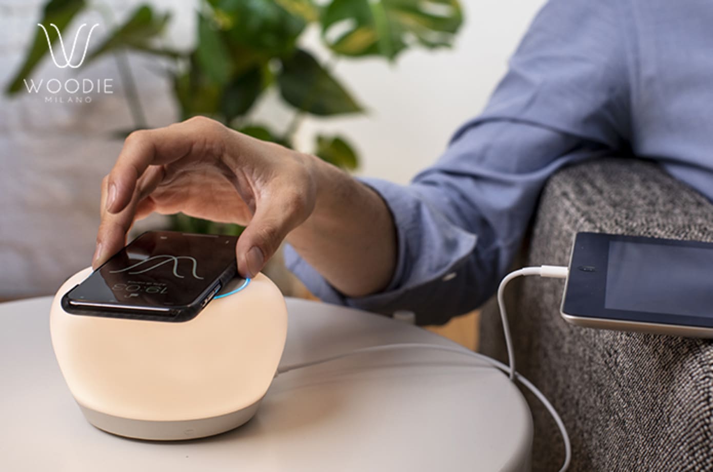 この「Luna Smart Lamp」には前述した様にQiワイヤレス充電、そしてBluetoothスピーカー、LEDライト、そして音声アシスタントのアレクサが内蔵されています。