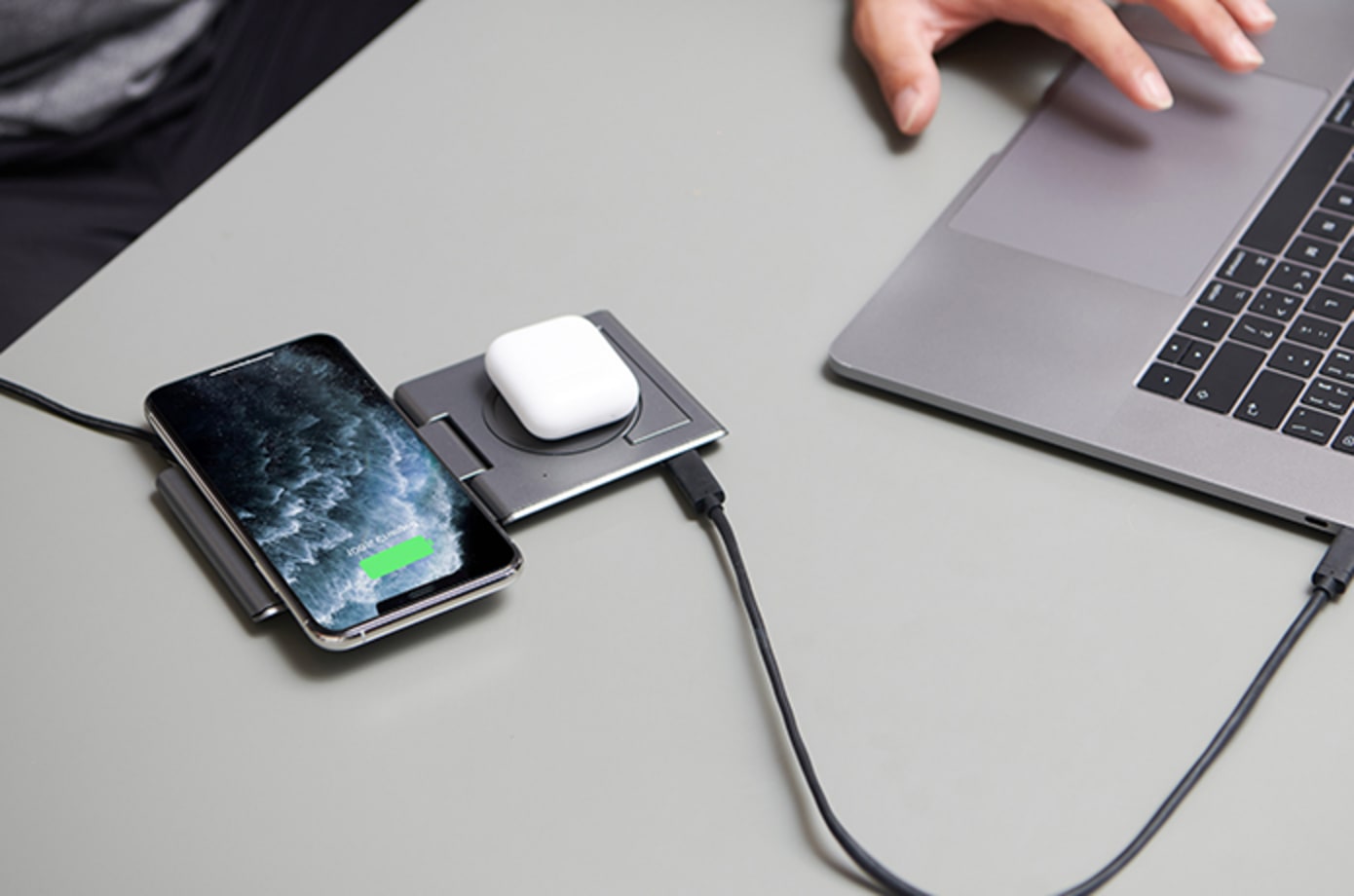 ではこの「Unravel 2」のどこが”これってめっちゃ便利やん”と思わせる部分かと言いますと、まずこの「Unravel 2」には2台のQiワイヤレス充電器が連結された様な構造になっており、2台のデバイスを同時にワイヤレス充電できるからです。つまりiPhoneとAirPods Proを同時に充電する事ができるのです。