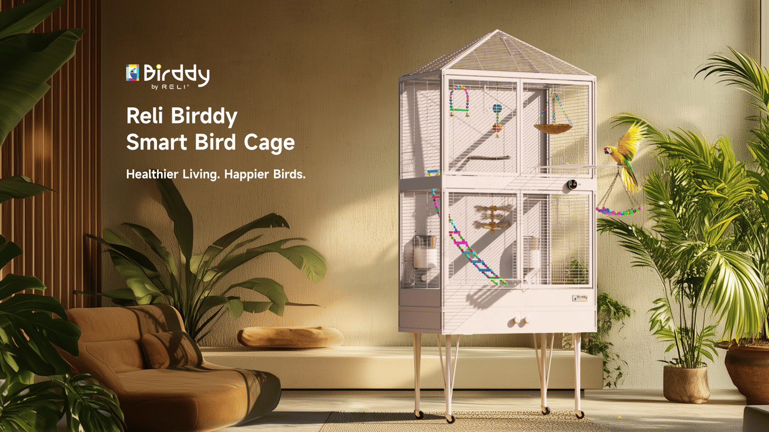 ただその他のペットになると飼っている人が少ないからな、そう言った全自動の給餌機やトレイと言ったものがなく、なかなかペットを置いて長期旅行に出かける事が出来ませんが、今回紹介するスマート鳥かご「Reli Birddy」であれば、安心して長期旅行にも出かける事が出来ます。
