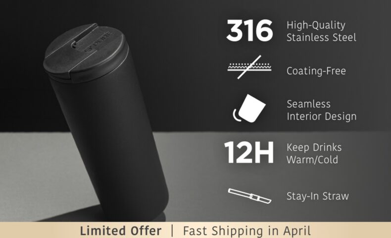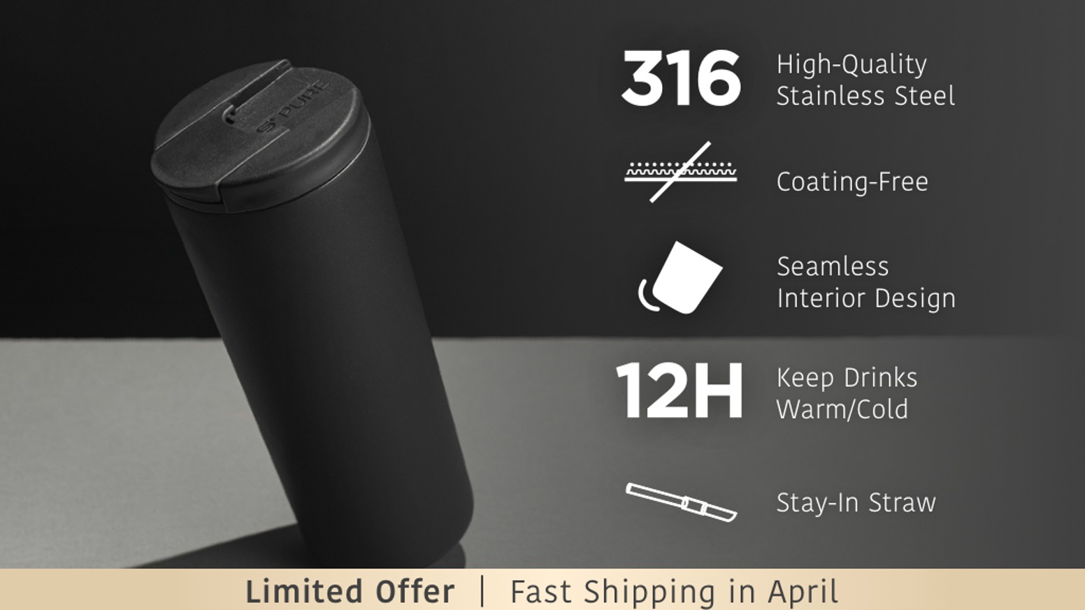 一方で今回紹介する保温ボトル「S+ Pure Thermos」は304ステンレス鋼よりも耐食性のある316ステンレス鋼が使われており、本来保温ボトルには入れる事ができないスポーツ飲料などを入れて持ち歩く事ができますし、プロテイン飲料なども大丈夫ですし、何と保温性能がホットドリンク・コールドドリンク共に12時間と非常に長く、いつまでも冷たく、そして温かくドリンクを頂けます。
