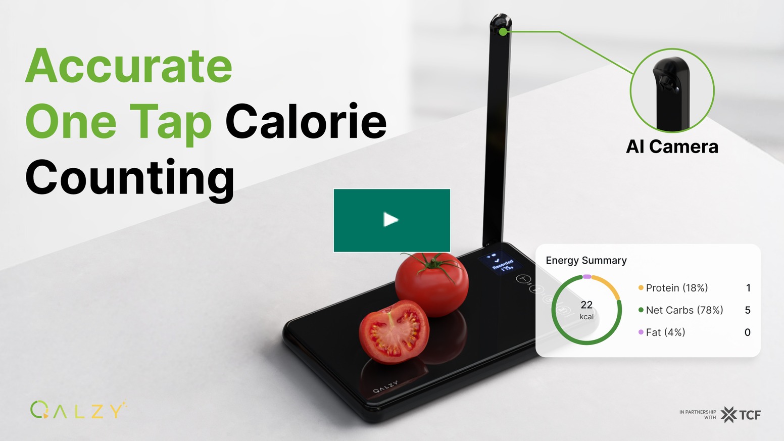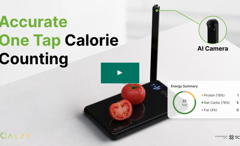 今回紹介する「Qalzy」はAIカメラ付きのスケール(量計り)で、食材や料理の載ったお皿などをこのスケールの上に乗せてスキャンボタンを押すとカメラを使い料理を検索し、そしてその料理の含まれるカロリーやビタミン、ミネラルと言ったものを自動計算してくれるのですが、これまでの同じ様なカメラを使って料理などを撮影しカロリーなどを算出する事が出来るスケールは、登録されたレシピに含まれる食材の量、比率を使って自動算出する様になっていましたので、例えばカレーを作る際にジャガイモやニンジンと言った野菜をゴロゴロとたっぷり入れたとしても、標準的な量のカロリーしか算出してくれませんでした。