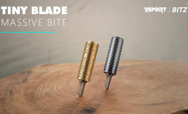そしてこの「BITZ」には柄やカバーにチタン合金と真鍮を使ったものがラインアップされているのですが、HIVE、SPINE、FROSTと言う幾何学模様をレーザーを使って彫刻したものやCOREと言う何もレーザー彫刻を施していないものなど合計8種類のデザインのナイフをラインアップさせていますので、もし興味を持たれた方は詳細は下記URLをご覧ください。