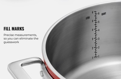 そしてこのダッチオーブンには一般的なダッチオーブンには見られない目盛が鍋の内側にプリントされており、このダッチオーブンを使って米を炊いたり、スープを作ったりする際にこの目盛を参考に水の量などを計量する事が出来ます。