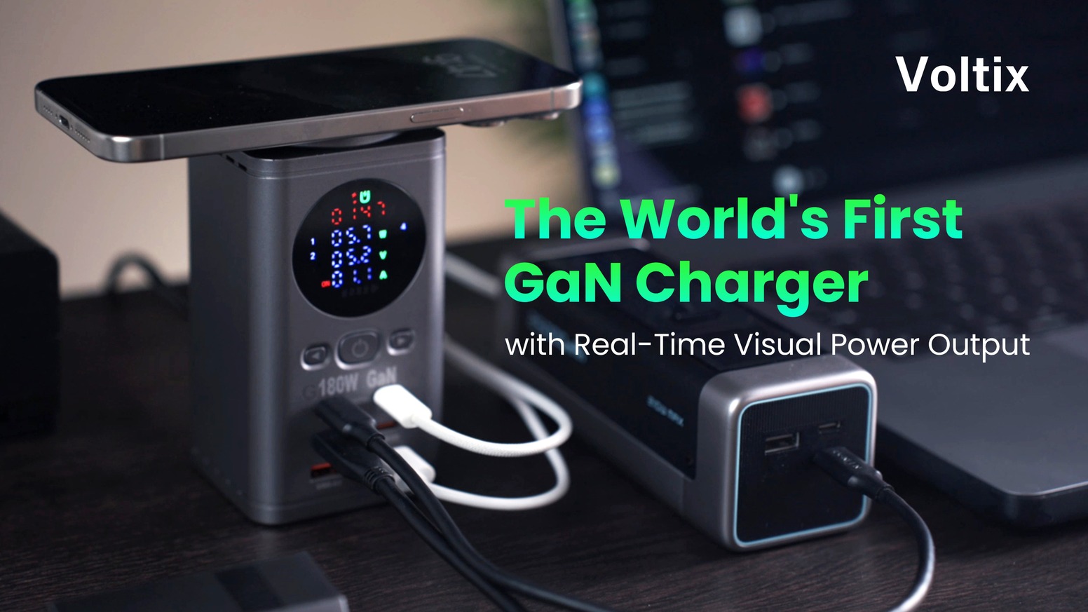 そしてまたこの「Voltix」には充電を可視化する為のディスプレイが搭載されており、スイッチを使って充電を行っているポートを切り替える事で、そのポートにおける充電電圧、充電電流、充電電力がすぐに分かる様になっています。
