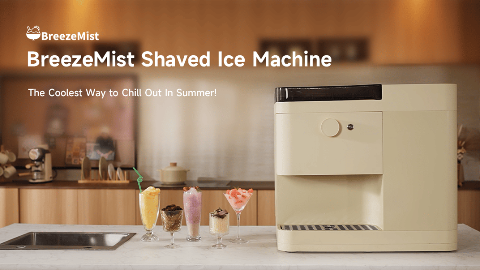 今回紹介するかき氷器「BreezeMist」では、水を装置に入れてボタンを押す事でわずか1分で水を氷に変え、そしてフワフワのかき氷を削る事が出来る画期的なかき氷器になります。