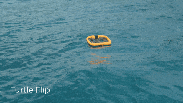 そしてまたこのドローンの特徴として波に洗われてもし水面上で裏返しになってしまった場合に、プロペラを回して体勢をひっくり返し、元の正常な向きに戻すと言う機能も持ち合わせていますので、もし撮影中に水面に落下しても回収は容易です。