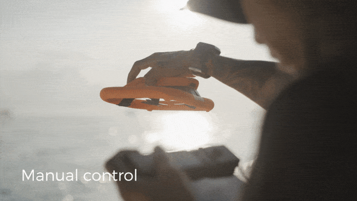 そして防水性を持つだけでなくドローンそのものにフロートとしての機能も持たせてある事で水面から離発着する事が出来ますので、サーフィンなどの映像を撮影すると言った場合、パドリングで沖へ出て、波に乗る前に海面にドローンを浮かべてスタンバイさせ、波が来た時に離陸させて撮影を始めさせると言った撮影が出来ますので、バッテリーの節約が可能で何回も撮影を繰り返す事が出来ますが、最大23分の連続飛行が可能なため、岸辺からパドリングをして沖へ出て波に乗って岸まで戻って来ると言った一連の映像を撮影する事も可能です。