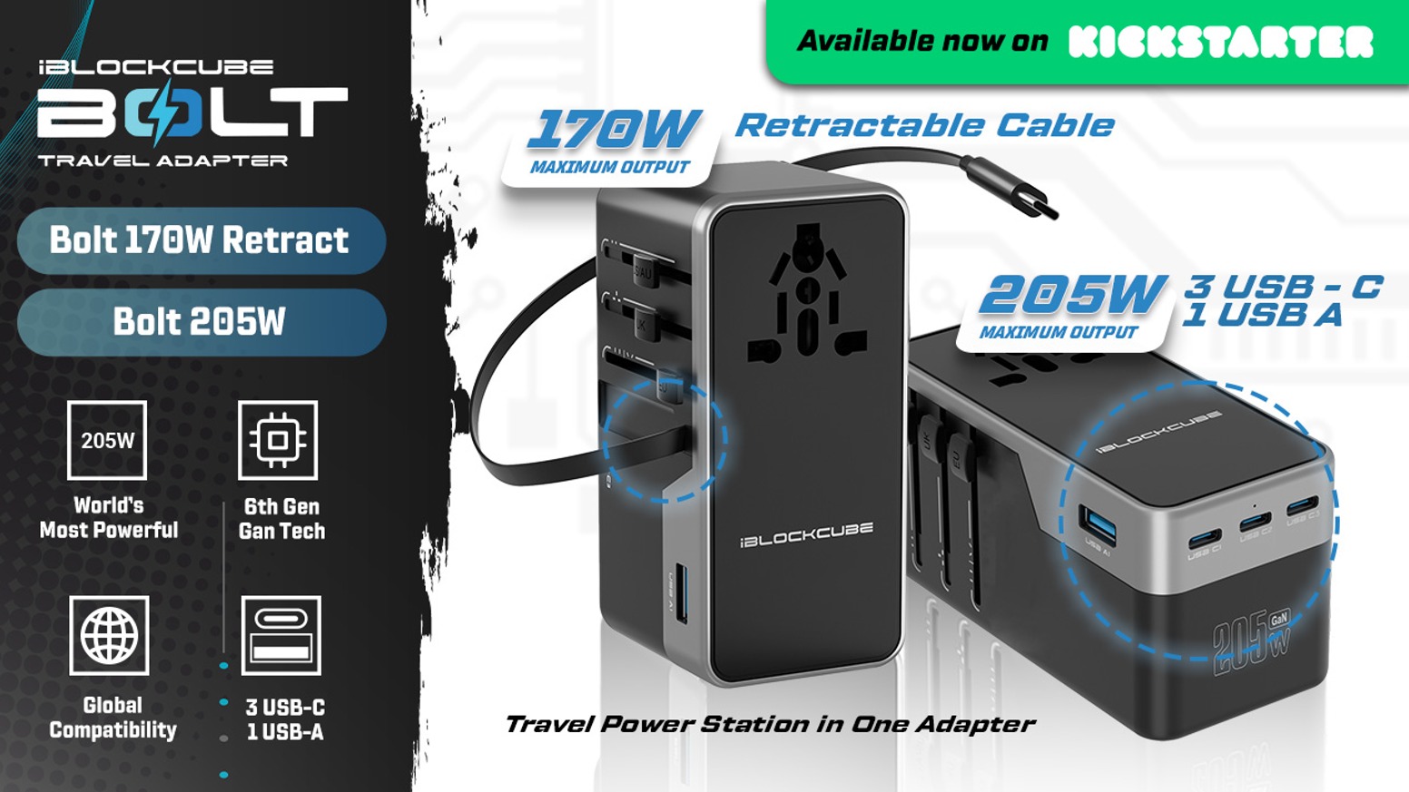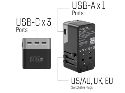 そしてもう1つの”Bolt 205W”は文字通り、合計最大出力が205Wと言うよりパワフルなUSB電源を搭載したトラベルアダプタで、USB-C2,C3ポートはどちらも最大出力が140Wで2台のUSB-C PDに対応したノートPCなどを同時に急速充電する事が可能な能力を持っています。
