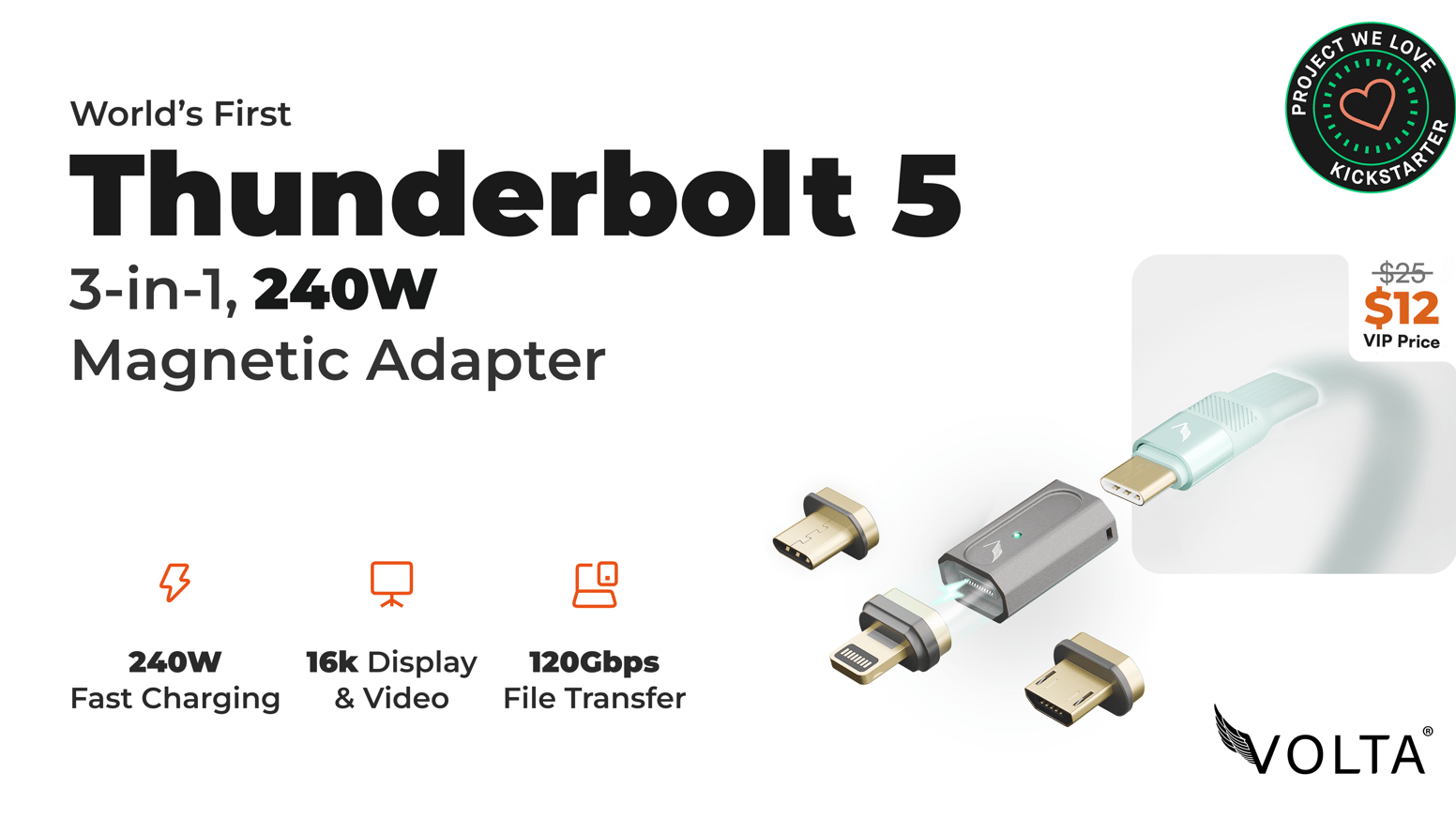 そう言った意味でこの磁気コネクタ「Volta Mag Adapter」は、USB-C PDで240Wと言う現行では最大電力で充電することが出来る性能を持っていますし、データ転送で言えばThunderbolt4/5と、データ転送においても最大で120Gbpsのハイスピードでデータ転送を行うことが出来る規格をサポートし、映像に関しても最大16Kの映像を転送することが出来ます。