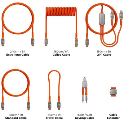次にこの「inCharge Life」には多くのケーブルバリエーションがラインアップされており、最も短いケーブルは15cmで、最も長いケーブルは240cmとなり、この他に30cm、120cm、そしてカールケーブル様のまとめる事ができる長さ180cmのケーブルと5種類もの長さのケーブルがラインアップされています。