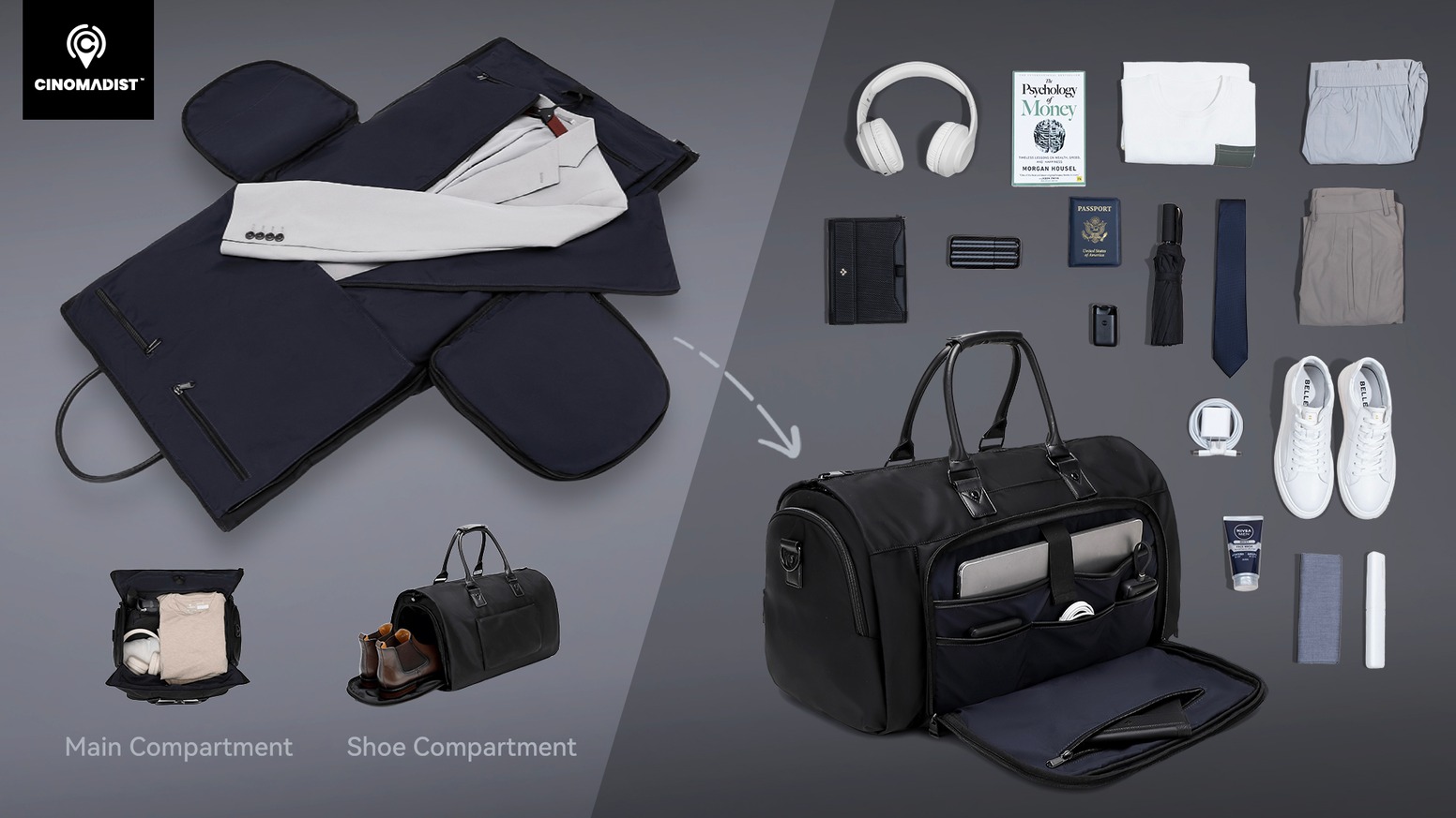 そう言う時に便利なスーツと着替えを一緒に収納することが出来るダッフルバッグが以前からあるのですが、今回紹介するダッフルバッグ「Cinomadist Aero」は一歩先を行っており、何とスーツにシワ1つつかないのです。