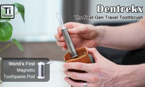 磁気式歯磨き粉ホルダー付属で歯磨き粉も一緒に持ち歩く事ができる携帯歯ブラシ「Dentrekx」